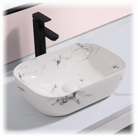 Lüks otel tarzı seramik gemi Lavabo özelleştirilebilir su transferi baskılı banyo lavabosu OEM banyo seramik Lavabo