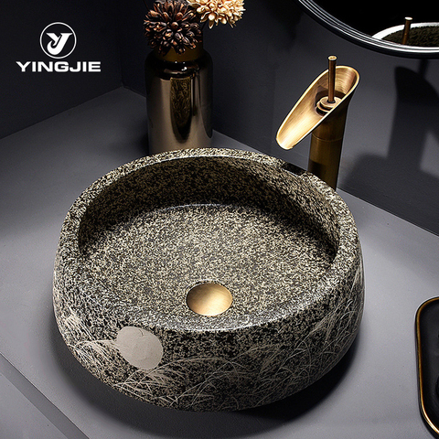Neuzugang der Kantonmesse JINGDEZHEN Naturstein Arbeitsplatte handgefertigte Sanitärkeramik-Handwäsche Kunstbecken Schüssel-Badezimmer-Wäschebecken