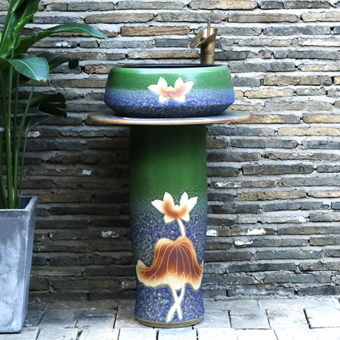 JINGDE ZHEN Balkon Künstlerische freistehende Keramik Kunst becken Sockel Hand waschbecken Waschbecken