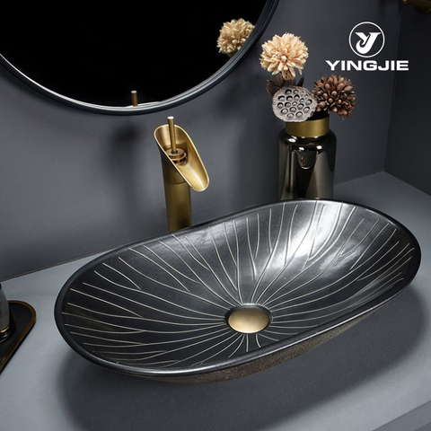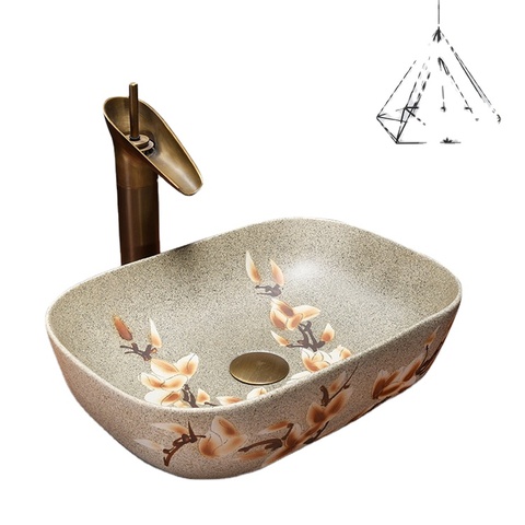 Kantonmesse Keramik-Badezimmer oval chinesischer Stil Blume einzigartiges Design Waschbecken Waschbecken