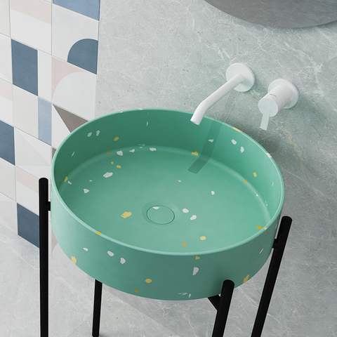 Canton Fair bagno lavandino Terrazzo colorato moderno fantasia bancone lavabo rotondo in cemento lavandino del bagno